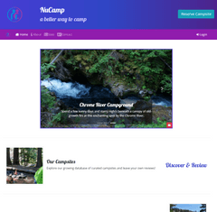NuCamp Campsite reservation Site. This site was built with React, and Node.JS. Check out the campsites, leave a review, and reserve your spot.